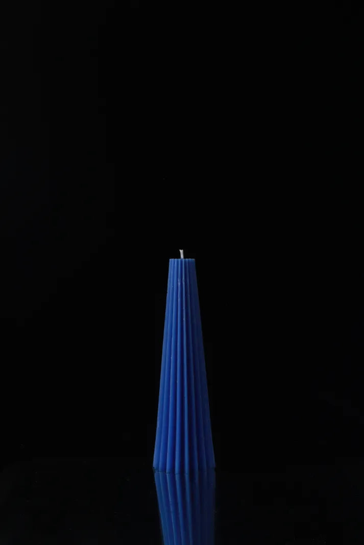 A medium tapered okra fruit-inspired candle, that can also tie resemblance to a gear.